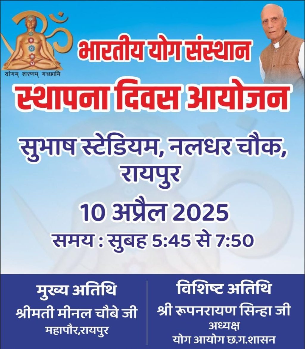 RV cg news राजू वासवानी, रायपुर 08/अप्रैल/2025 भारतीय योग संस्थान,रायपुर- महेश रूपरेला ने जानकारी देते हुए बताया...