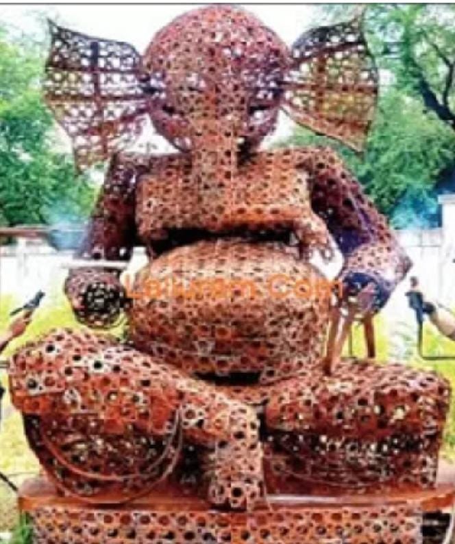 रायपुर – रेल्वे लोको शेड में बनने वाले रेल गाड़ियों के डब्बे एवं इंजनों की मरम्मत उपरांत निकले हुए अन उपयोगी पार्ट्स के पहाड़ जमा होने से कुछ संस्कृति प्रिय व्यक्ति अनेकों वर्षों से कुछ नया करने की चाह में अनेको प्रयोग करते रहते हैं इस कला में रायपुर लोकोशेड का नाम पूरे हिंदुस्तान में प्रचलित हो हो गया है यहां की निर्मित कृतियां अनेकों शहरों के चौक चौराहों, बाग बगीचों की सुंदरता बड़ा रही है रायपुर में नवरात्रि में माता के पार्ट्स से बनी अनूठी मूर्ति और गणेश उत्सव में गणपति बप्पा की पार्ट्स निर्मित अनूठी मूर्ति भक्त जनों में कौतूहल पैदा करती है इस तरह बचे हुए मशीनी पार्ट्स का बेहतरीन उपयोग रायपुर के लोकोशेड के कलाकार वर्षों से करते आ रहे हैं।