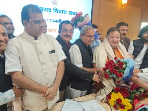 रायपुर 28 नवंबर 2024/विधानसभा अध्यक्ष डॉ. रमन सिंह ने आज छत्तीसगढ़ विधानसभा के सभागार में आयोजित समारोह में नव निर्वाचित विधायक सुनील सोनी को विधायक पद की शपथ दिलाई। इस अवसर पर मुख्यमंत्री विष्णु देव साय सहित मंत्रीगणों और विधायकों ने सुनील सोनी को उनकी नई जिम्मेदारियों के लिए शुभकामनाएं दी।