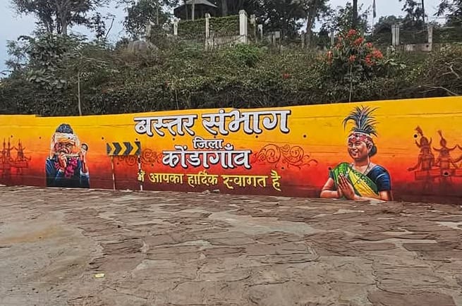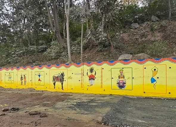 जगदलपुर एवं रायपुर के मध्य केशकाल घाट में अब सड़क भी बन रही साथ ही घाट के दीवारों पर बहुत ही