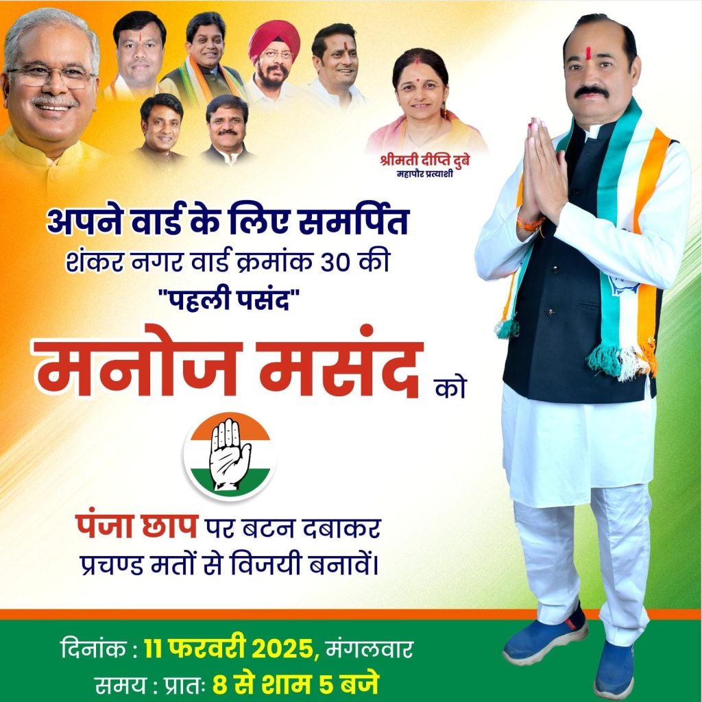 रायपुर – अभिनव मसंद ने जानकारी देते हुए बताया शंकर नगर वार्ड क्रमांक 30 के पार्षद प्रत्याशी