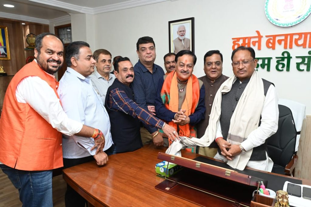 CM विष्णु देव साय के जन्म दिवस पर बधाई देने पहुंचे पूर्व विधायक श्रीचंद सुंदरानी, नव निर्वाचित पार्षद भगवती चरण वार्ड 57 के अमर गिदवानी, मुकेश पंजवानी,राजेश वासवानी,तेजकुमार बजाज, सतीश थौरानी, राहुल चंदनानी, और राजेश गिदवानी।
