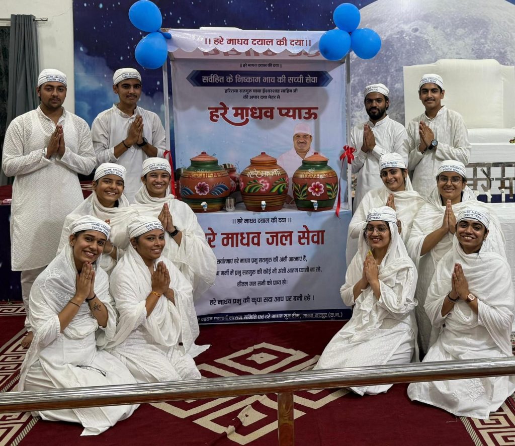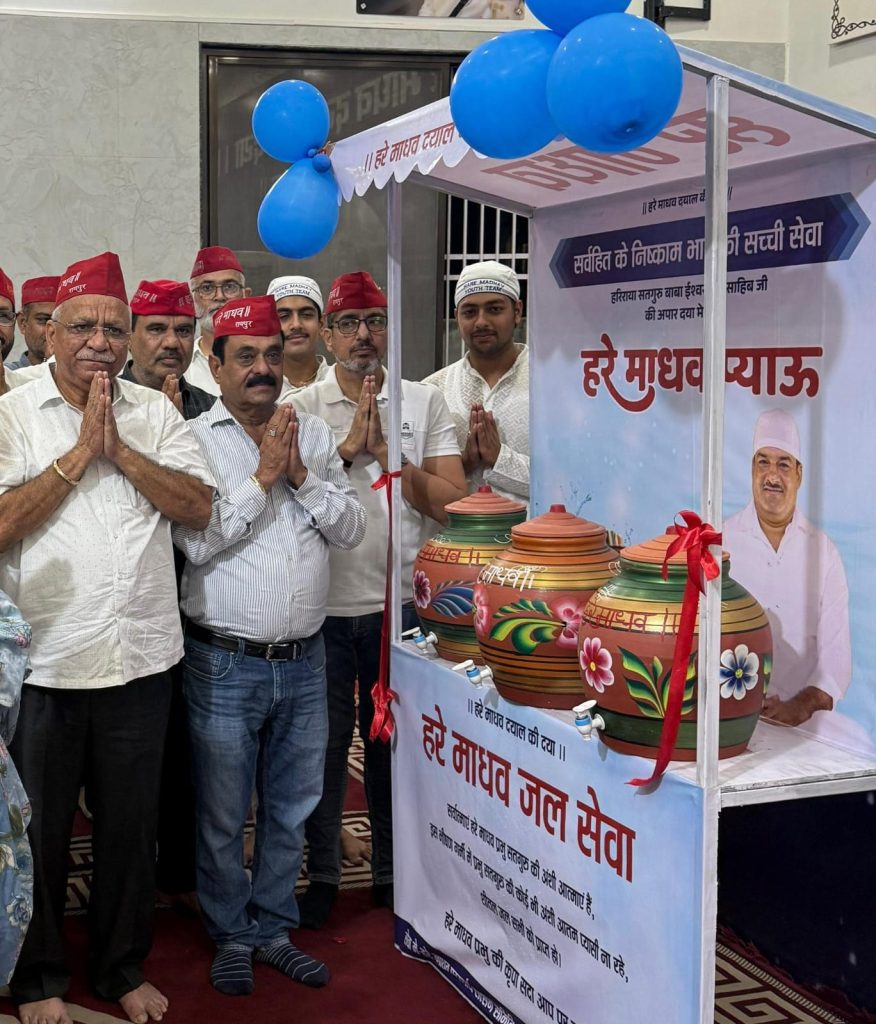 तपती दोपहरी में सर्वात्माओं को पीने हेतु शीतल जल उपलब्ध कराने के लिए आज हरे माधव दरबार साहिब रायपुर में अध्यक्ष श्री प्रकाश जादवानी एवं सचिव श्री तेज कुमार बजाज, श्वेता हीरानी, संगीता जादवानी, जया बुलचंदानी, बंटी दुर्गानी, रितेश बुलचंदानी, यश गंगवानी, महेश रामानी, अभिषेक होतवानी एवं सर्व संगत की उपस्थिति में हरे माधव प्याऊ का उद्घाटन किया गया।