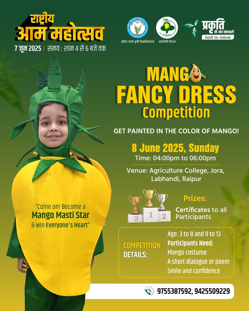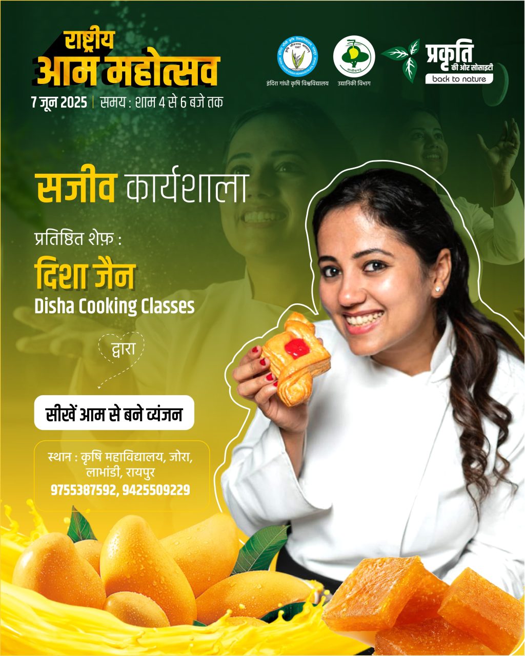 इंदिरा गांधी कृषि विश्वविद्यालय, उद्यानिकी विभाग, एवं प्रकृति की ओर सोसायटी के संयुक्त तत्वाधान में आयोजित राष्ट्रीय आम महोत्सव 6 से 8 जून तीन दिवसीय,कृषि महाविद्यालय, जोरा में आयोजित किया जा रहा है।