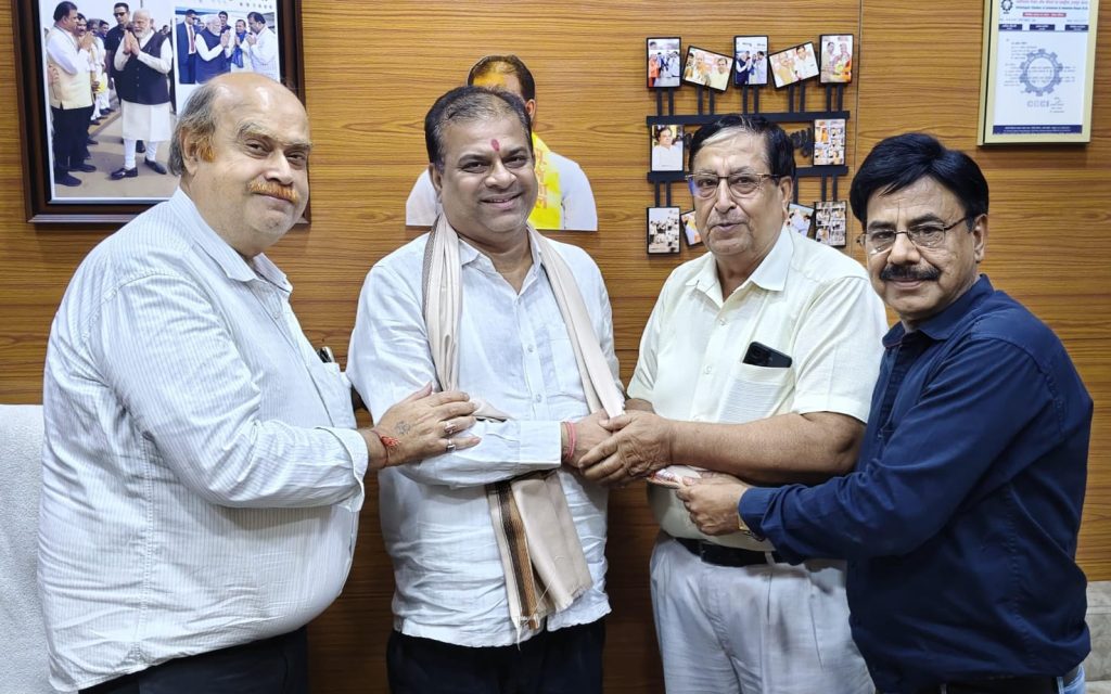 रायपुर, छत्तीसगढ़: चेंबर ऑफ कॉमर्स एंड इंडस्ट्री के कार्यकारी अध्यक्ष ललित जैसिंघ जी का अभिनंदन कटोरा तालाब के पूर्व मुखी व श्याम नगर व्यापारी संघ के अध्यक्ष डॉ. गोपाल चावला और मनोहर चंदनानी जी ने किया। इस अवसर पर RV CG News के प्रमुख राजू वासवानी भी उपस्थित थे।