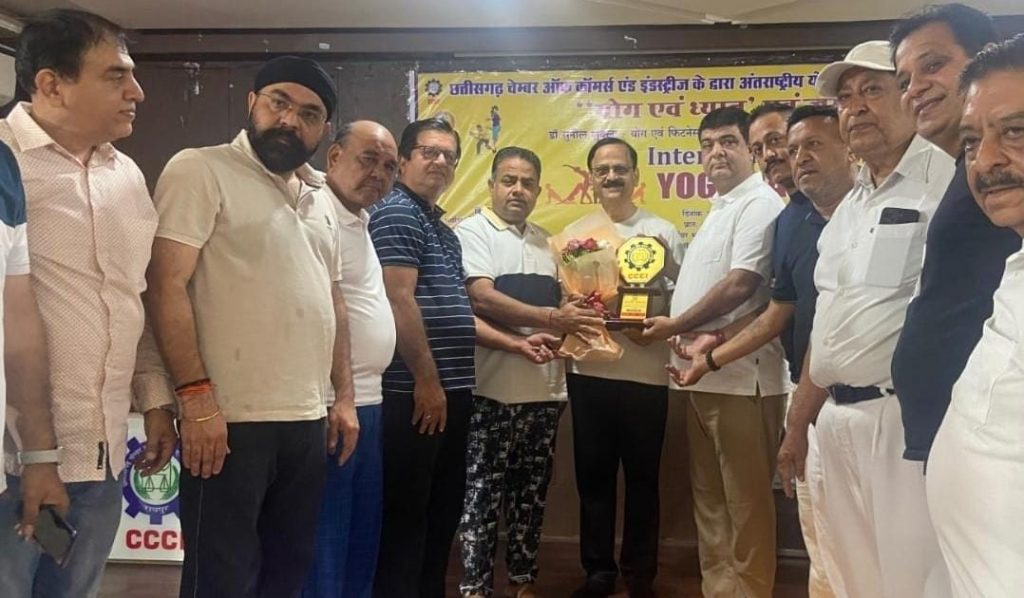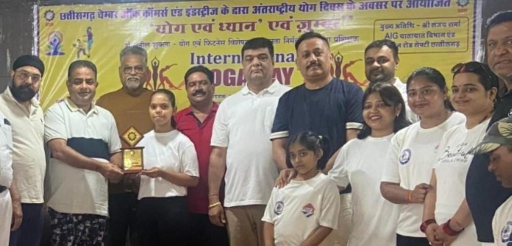 आज दिनांक 21 जून 2025 को अंतर्राष्ट्रीय योग दिवस के उपलक्ष्य में, चेंबर ऑफ कॉमर्स एंड इंडस्ट्री द्वारा चेंबर भवन में एक दिवसीय योग शिविर का सफल आयोजन किया गया। इस शिविर में यातायात विभाग एवं अध्यक्ष रोड सेफ्टी छत्तीसगढ़ के असिस्टेंट इंस्पेक्टर जनरल श्री संजय शर्मा जी के मुख्य आतिथ्य में बड़ी संख्या में व्यापारिगण एवं आमजनों ने उत्साहपूर्वक भाग लिया, चेंबर प्रतिनिधी मंडल ने मुख्य अतिथि श्री संजय शर्मा जी को पुष्प गुच्छ एवं स्मृति चिन्ह भेंट कर स्वागत किया।
