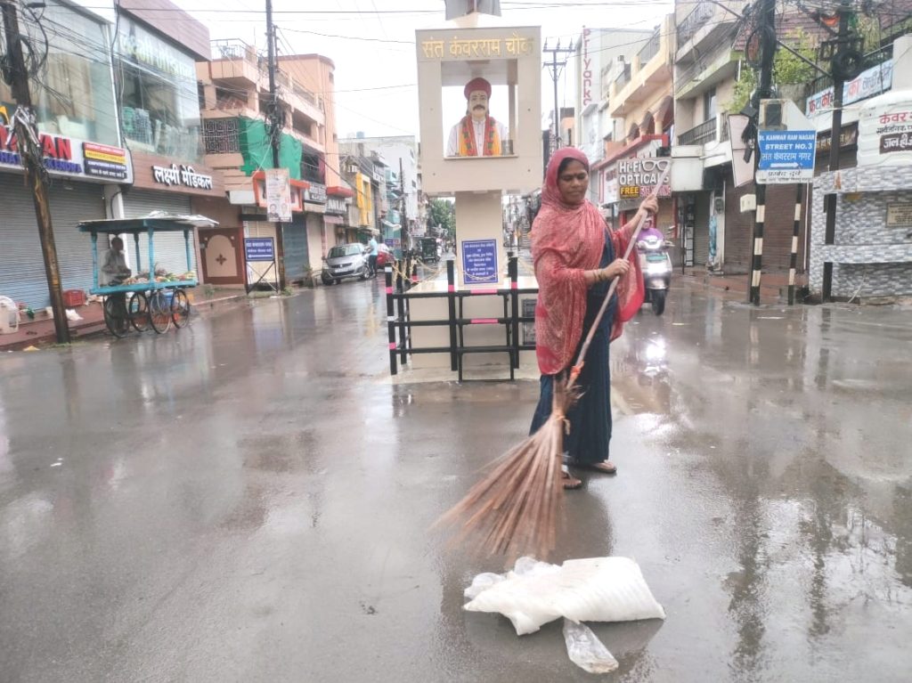 वार्ड में सभी सफाईकर्मी पूरी लगन से अपना काम कर रहे थे। इस नजारे ने आपको वार्ड के पार्षद अमर गिदवानी जी से बात करने के लिए प्रेरित किया। उनसे बात करने पर पता चला कि रात भर हुई बारिश के कारण बस्ती में पानी भर गया था, जिसकी सफाई का कार्य युद्धस्तर पर चल रहा था। सराहनीय बात यह है कि गिदवानी जी स्वयं भी सफाईकर्मियों के साथ मिलकर इस कार्य में हाथ बंटा रहे थे।