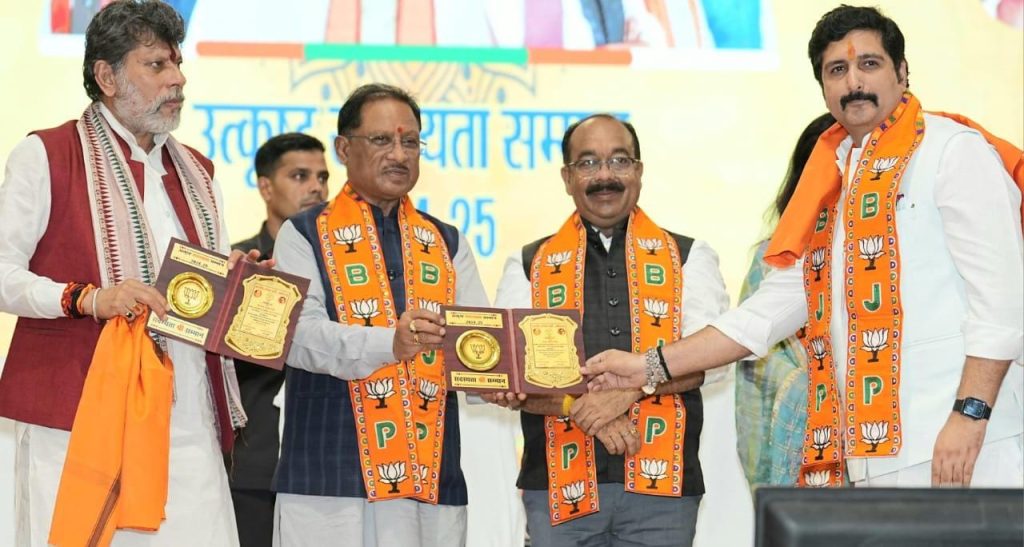 रायपुर।भारतीय जनता पार्टी के सदस्यता अभियान 2024-25 के अंतर्गत उत्कृष्ट कार्य करने पर भाजपा प्रदेश मीडिया प्रभारी श्री अमित चिमनानी को सदस्यता श्री पुरस्कार से सम्मानित किया गया। यह सम्मान उन्हें छत्तीसगढ़ के मुख्यमंत्री श्री विष्णु देव साय, प्रदेश अध्यक्ष श्री किरण देव, उपमुख्यमंत्री श्री अरुण साव एवं अन्य वरिष्ठ नेताओं की उपस्थिति में प्रदान किया गया।