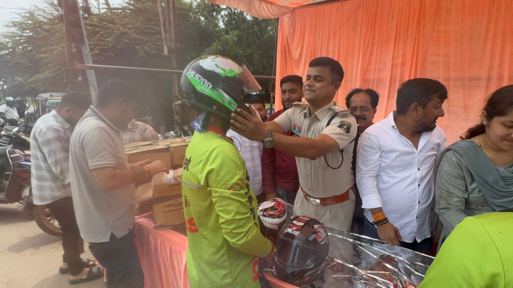 रक्षाबंधन पर भाइयों की सुरक्षा के लिए बहनों ने बाँधी राखी और वितरित किए हेलमेट