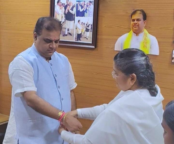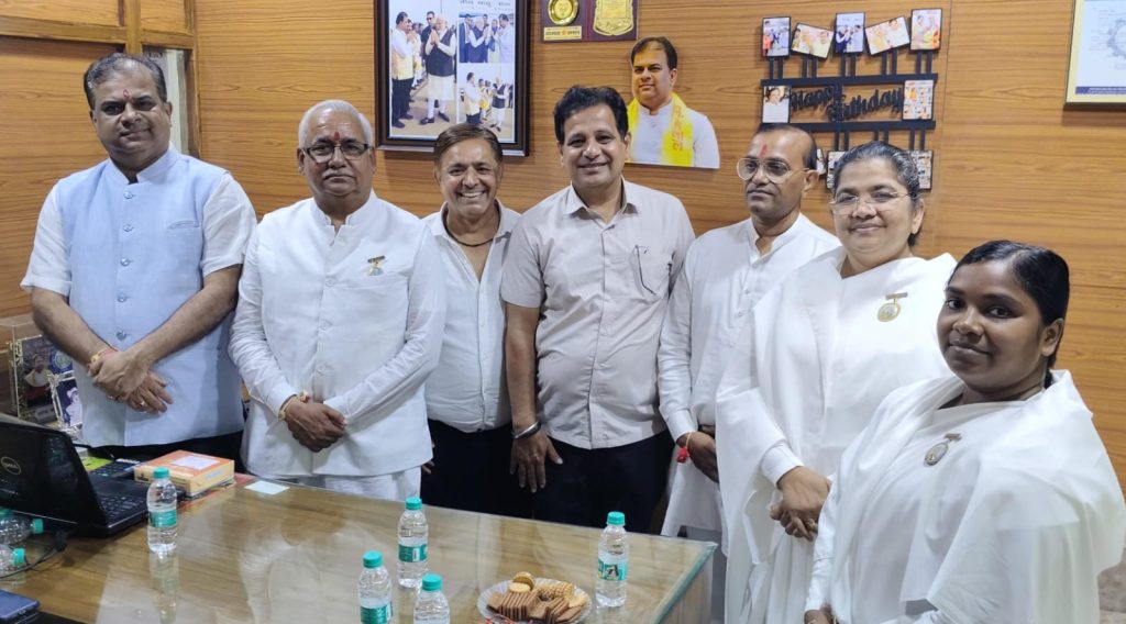रक्षा बंधन पर्व पर ब्रह्माकुमारी आश्रम की बहन सविता दीदी ने रक्षा कवच ललित जैसिंघ के हाथों में बांधा