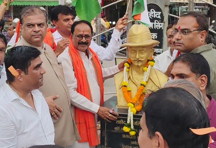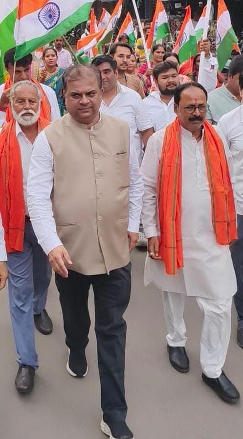 हर व्यक्ति तिरंगा यात्रा से जुड़ गया बीजेपी जिला अध्यक्ष रमेश ठाकुर ने कहा हर मंडल में तिरंगा यात्रा निकल रही है हर व्यक्ति के मन में देश भक्ति की भावना जाग रही है पूर्व बीजेपी जिला अध्यक्ष जयंतो पटेल ने कहा एक सो पचास चौक में देश भक्ति गीत चलेंगे।