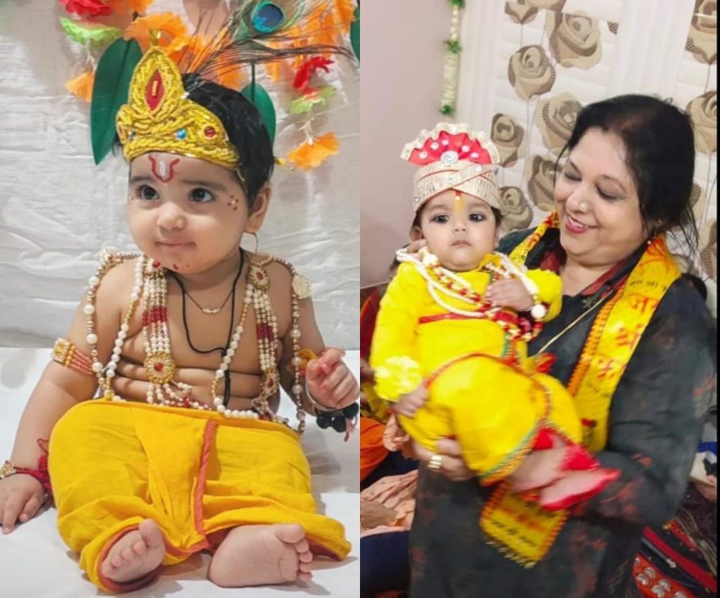 नन्हे बालक श्रीकृष्ण बने विराट गजवानी,मम्मी गुंजन गजवानी पापा अविनाश गजवानी