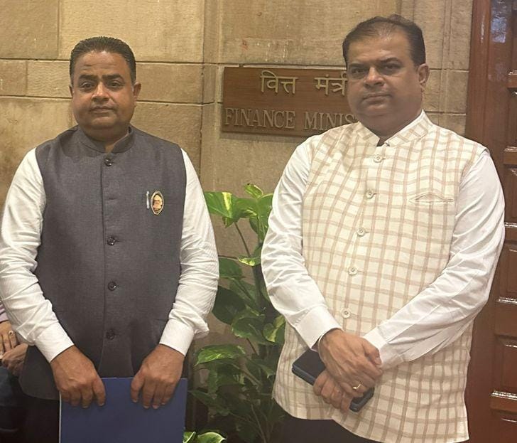 आज दिनांक 28 अगस्त 2025 को चेंबर ऑफ कॉमर्स एंड इंडस्ट्रीज के प्रदेश अध्यक्ष सतीश थौरानी के नेतृत्व में चेंबर प्रतिनिधिमंडल ने आज नॉर्थ ब्लॉक, नई दिल्ली में केंद्रीय वित्त मंत्री, माननीया श्रीमती निर्मला सीतारमण जी से सौजन्य भेंट मुलाकात की। इस भेंट वार्ता में वस्तु एवं सेवा कर (जीएसटी) प्रणाली के सरलीकरण और युक्तियुक्तकरण से संबंधित मुद्दों पर चर्चा की गई।