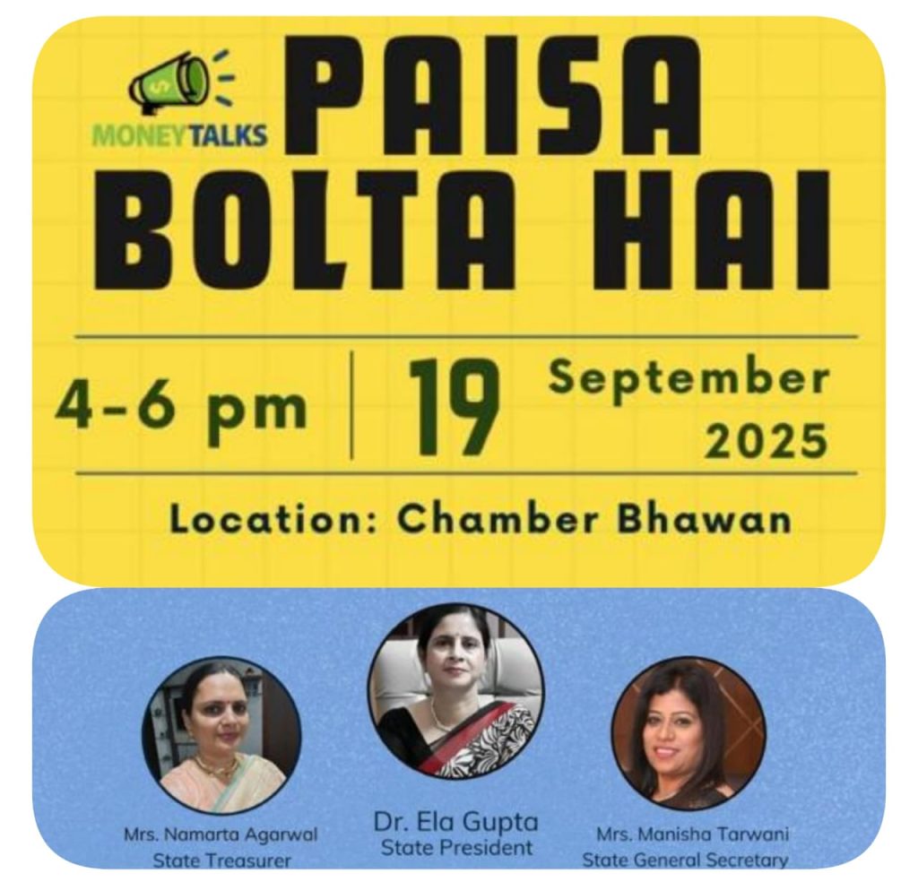 “पैसा बोलता है” विषय पर, चेंबर महिला विंग की दूसरी जनरल बॉडी मीटिंग आज 19 सितंबर शाम 4:00 बजे से