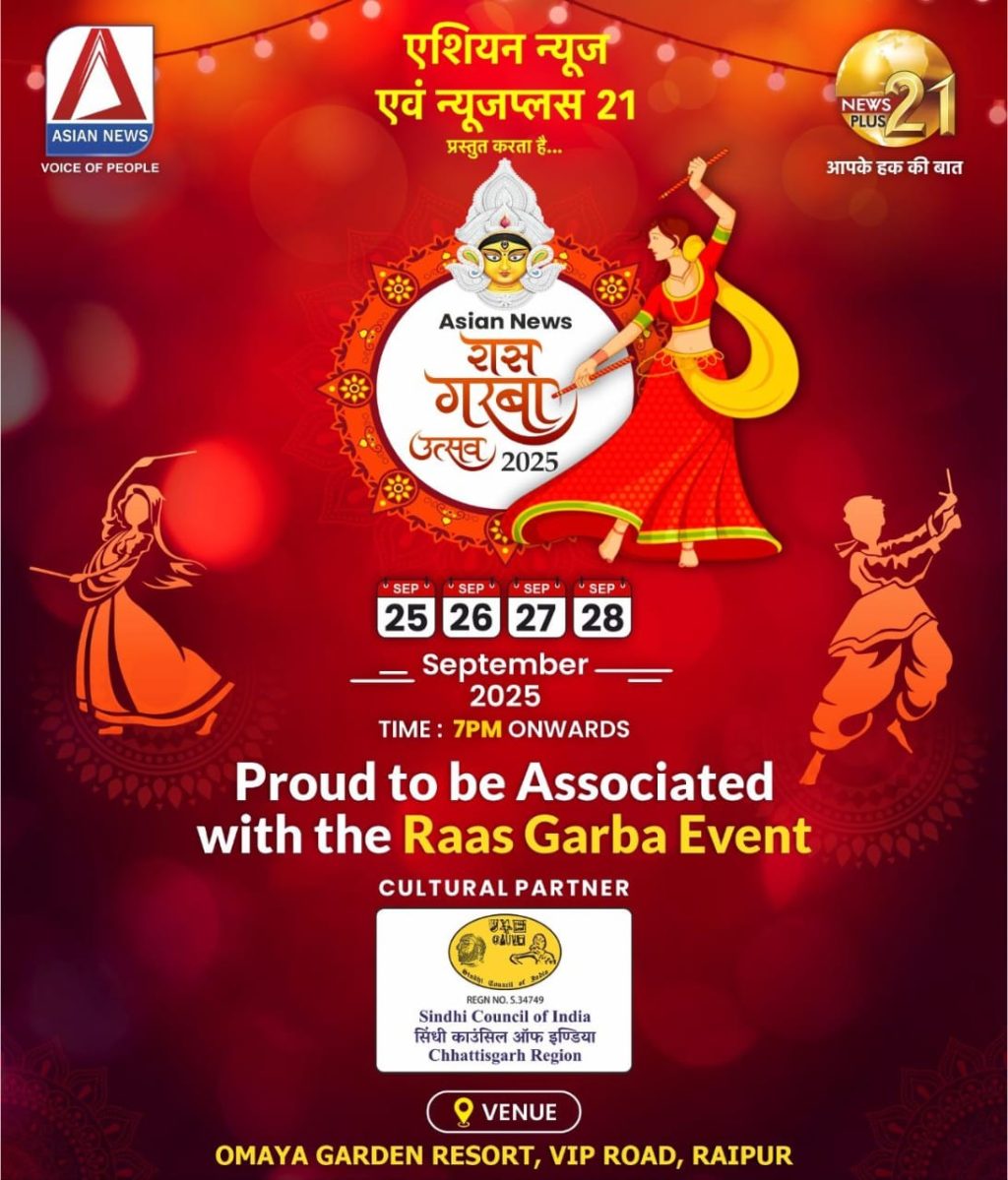 Asian News एवं News 21 के संयुक्त तत्वावधान में सिंधी काउंसिल ऑफ इंडिया, छत्तीसगढ़ इकाई द्वारा भव्य रास गरबा उत्सव का आयोजन किया जा रहा है। यह आयोजन 25 सितंबर से 28 सितंबर तक ओमाया गार्डन, वी.आई.पी. रोड, रायपुर में होगा। जिसकी निशुल्क पास प्राप्त कर सकते हैं
