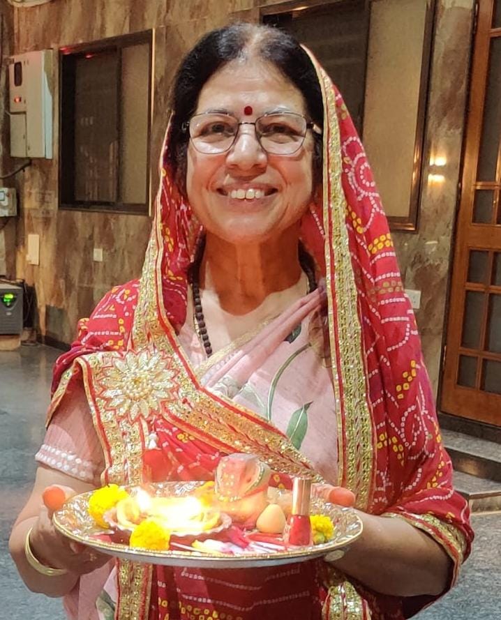 मधु बहादुर सिंह ने स्वयं पूजा संपन्न करवाई और करवाचौथ की पौराणिक कथा का वाचन किया।