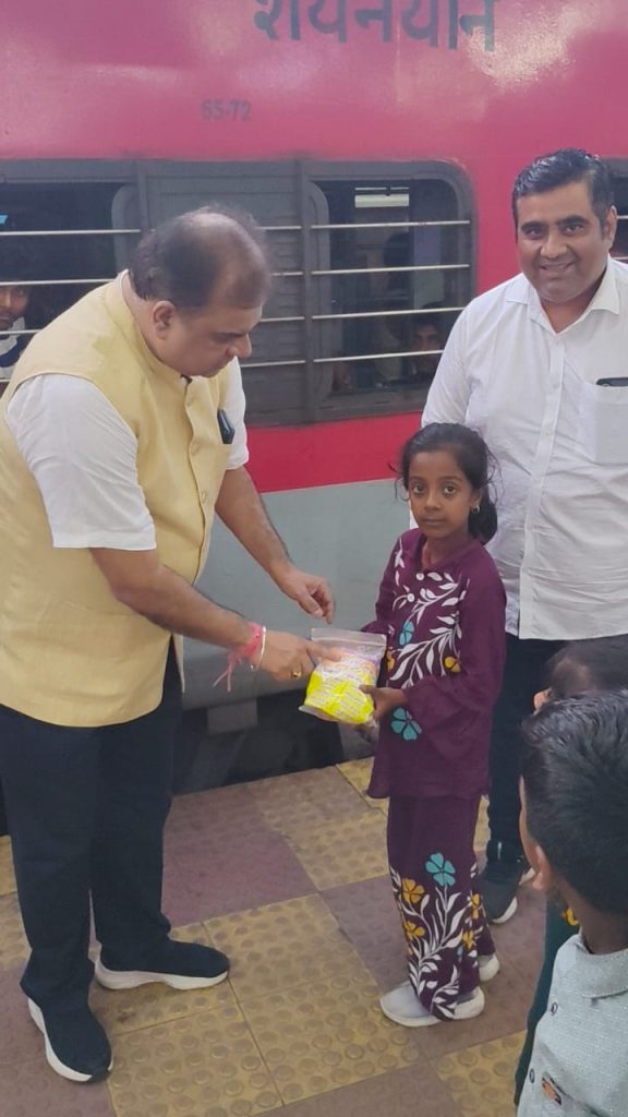 सिंधी काउंसिल द्वारा की जा रही है सिंधी काउंसिल के प्रदेश अध्यक्ष ललित जैसिंघ ने कहा कुली एवम सफाई कर्मचारी और यात्रीगण को सामग्री वितरण की गई जैसे ही एक यात्री जो महासमुंद का रहने वाला है रामलाल साहू को जब दीया पैकेट मिला सीधे अपने माथा पर लगाकर जय श्री राम के नारे लगाया शदाणी दरबार के सचिव उदय शदाणी ने अपने उद्बोधन में कहा दिवाली में सभी खुश रहे और अच्छे से दिवाली मनाए।
