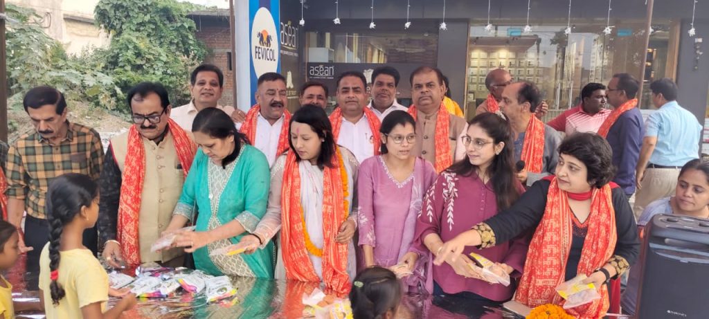 सिंधी काउंसिल ऑफ इंडिया छत्तीसगढ़ इकाई द्वारा एक दीया श्रीराम के नाम पर देवेंद्र नगर इलाके में निशुल्क दीया एवम रंगोली वितरण किया गया सिंधी काउंसिल के प्रदेश अध्यक्ष ललित जैसिंघ ने बताया लगातार चार दिनों से दीया एवम रंगोली वितरित की जा रही है हमारा प्रयास है दिवाली के पहले सभी घर पर दीए और रंगोली का पैकेट पहुंचे और एक आग्रह है सभी एक दीया श्रीराम के नाम से जलाए आयोजन के मुख्य अतिथि चैंबर अध्यक्ष सतीश थोरानी ने कहा सिंधी काउंसिल की पहल को नमन बहुत अच्छा नेक कार्य संस्था द्वारा किया जा रहा है निशुल्क दीया एवम रंगोली हर घर तक पहुंचे इसी लक्ष के साथ काम किया जा रहा है वार्ड पार्षद कृतिका जैन ने कहा बड़ी खुशी का पल मेरे लिए है मेरे वार्ड में एक दीया श्रीराम के नाम पर निःशुल्क वितरण किया जा है बड़ी संख्या वार्ड वासी को रंगोली पैकेट दिए गए पंडरी कपड़ा मार्केट के अध्यक्ष सरल मोदी ने दिवाली पर बधाई दी सिंधी काउंसिल महिला विंग अध्यक्ष काजल सचदेव ने कहा बच्चे पुरुष महिला सभी को दीए वितरण किया गया सबने एक स्वर में जय श्रीराम के नारे लगाए इस अवसर पर चैंबर अध्यक्ष सतीश थोरानी सिंधी काउंसिल अध्यक्ष ललित जैसिंघ पार्षद कृतिका जैन पंडरी कपड़ मार्केट अध्यक्ष सरल मोदी सिंधी काउंसिल के राजेश रेलवानी