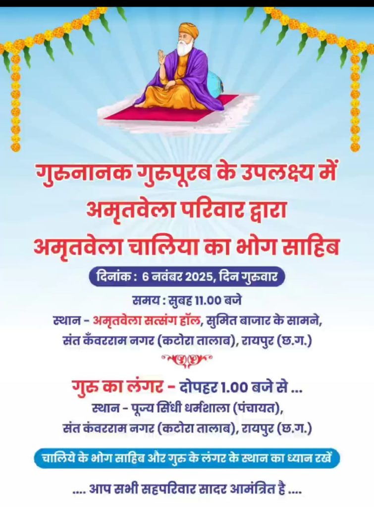 गुरुनानक गुरुपूरब विशेष आयोजन – अमृतवेला परिवार द्वारा सादर आमंत्रण