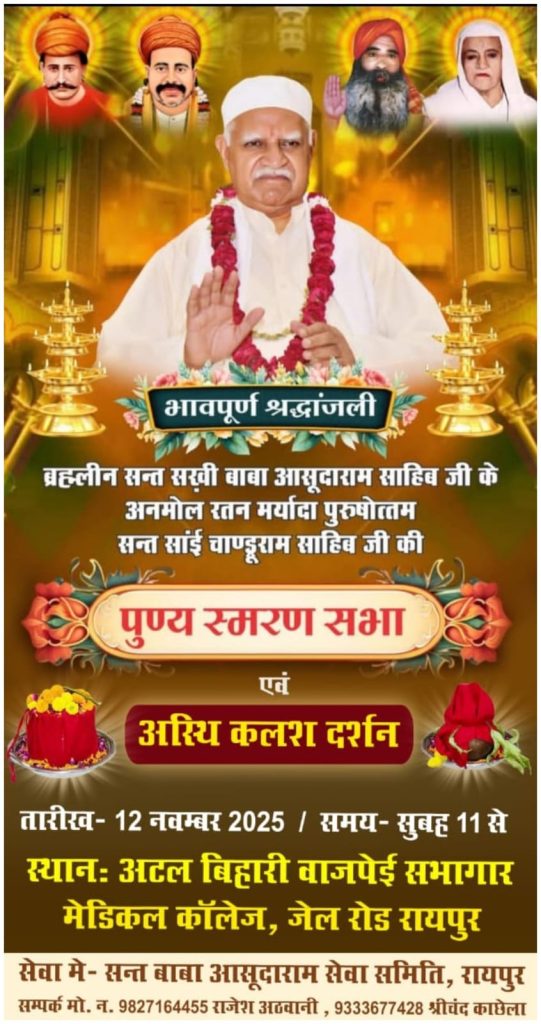 ब्रह्मलीन सन्त सखी बाबा आसूदाराम साहिब जी के अनमोल रत्न ,पूज्य शिव शान्ती आश्रम लखनऊ के पीठाधीश्वर ,मर्यादा पुरुषोत्तम सतगुरू देव भगवान सन्त सांई चाण्ड्रूराम साहिब जी की पुण्य स्मरण सभा व अस्थि कलश दर्शन समारोह रखा गया है