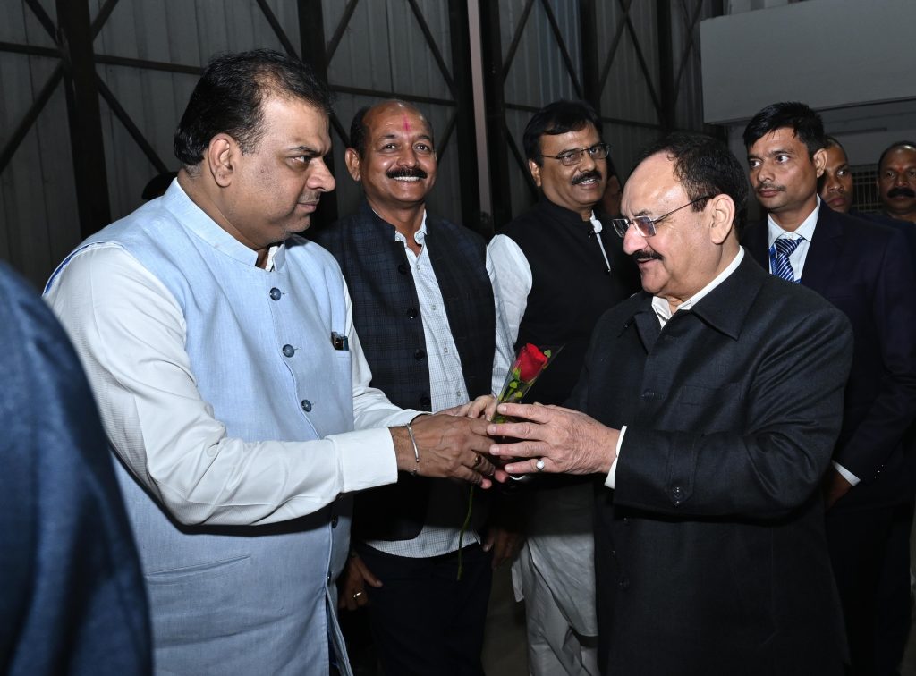 रायपुर आगमन पर बीजेपी के राष्ट्रीय अध्यक्ष जे.पी. नड्डा का बीजेपी जिला उपाध्यक्ष ललित जैसिंघ ने स्वागत किया