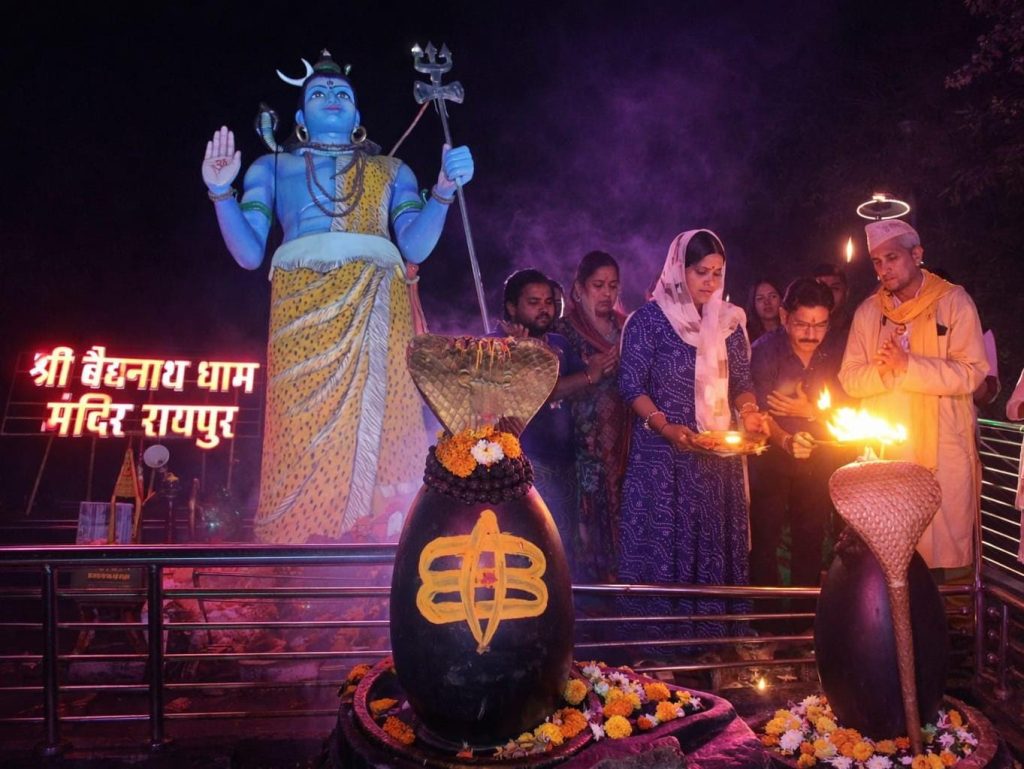 रायपुर के मोतीबाग स्थित प्रेस क्लब के बाजू में स्थित बाबा बैद्यनाथ धाम मंदिर में हर सोमवार के पावन अवसर पर बाबा भोलेनाथ की भव्य महा आरती का आयोजन किया