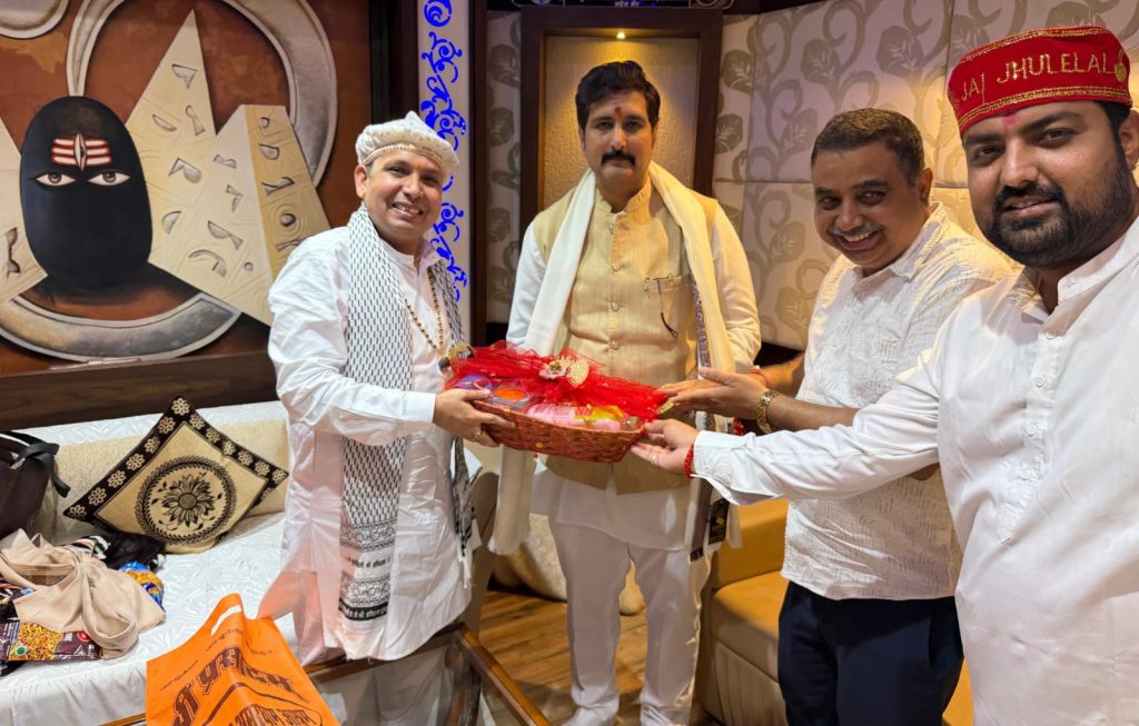 पूज्य संत श्री साईं लालदास जी के निमंत्रण में श्री सिंधु अमरधाम आश्रम तीर्थ चक्करभाटा में आज पूज्य जगतगुरू रामभद्राचार्य जी का आगमन हुआ। उनका सानिध्य एवं आशीर्वाद प्राप्त हुआ,जिसमे रायपुर से भाजपा प्रदेश प्रवक्ता अमित चिमनानी जी के साथ मोहन होतवानी जी, विजय लहरवानी जी शामिल हुए,जगत गुरु रामभद्राचार्य जी ने अपने अशीर्वादक उदबोदन में कहा कि इस पावन भूमि से हम ईश्वर से प्रार्थना करते है,की कोई ऐसा चमत्कार हो कि सिंध प्रदेश पुनः भारत का हिस्सा हो,उन्होंने कहा कि पाकिस्तान का नाम विश्व के नक़्शे से विलुप्त हो,उन्होंने अपने उदबोदन मे वरुण अवतार भगवान झूलेलाल जी के जीवन का चित्र भी भक्तों के समक्ष प्रस्तुत किया,साथ ही उन्होंने श्री वरुण अवतार को प्रभु श्रीराम जी का अतिप्रिय भी बताया,कार्यक्रम का संचालन